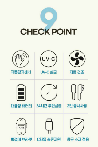 - 자동감지센서가 있어서 굳이 터치하지 않아도 칫솔을 넣고 빼기에 위생적이라